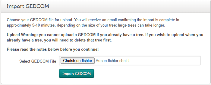 - Import existing GEDCOM files